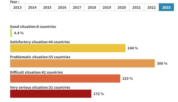 A lista, que avalia o ambiente para se exercer o jornalismo, classifica as situações entre: boa, satisfatória, problemática, difícil e muito séria. Considerando a totalidade de países, a situação é “muito grave” em 31, “difícil” em 42, “problemática” em 55 e “boa” ou “satisfatória” em 8. Pelo sétimo ano consecutivo, a Noruega lidera a lista (confira completa).