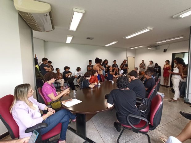 “Nós tivemos casos de estudantes travestis sendo desrespeitados em sala de aula, com professores, doutores, desrespeitando no tratamento. Tivemos casos, por exemplo, de seguranças da UFG, que são terceirados, tirando estudantes travestis do banheiro, sondando estudantes travestis e chamando para sair do banheiro feminino. Nesse caso, acho que esse cidadão, que não sei nem de onde saiu, já foi dispensado”.