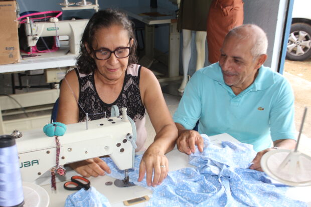 O homem lembra que a esposa que já costurava resolveu fazer parte do programa, e ele tinha que lavá-la e buscá-la todos os dias no galpão onde são realizados os trabalhos, e um certo dia decidiu virar costureiro. “Como eu tinha que ir lá no galpão duas vezes por dia, eu pensei que poderia aprender também, foi aí que perguntei para a dona Serenita se com a minha idade eu aprenderia (Risos) e ela disse que sim, então eu fiz e hoje estamos trabalhando juntos.”