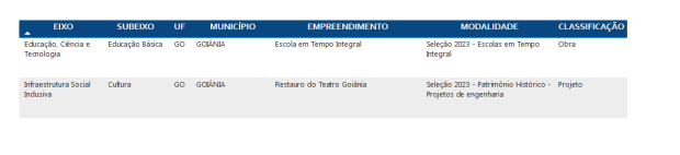 A cidade de Goiânia foi contemplada com dois projetos: restauro do Teatro Goiânia e escola em tempo integral.