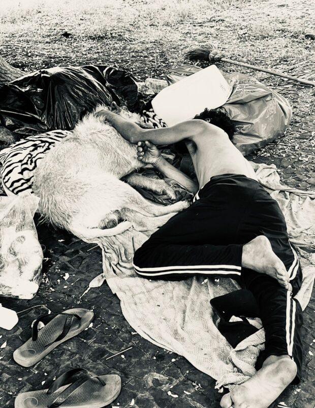 Sono de pedra e flores do morador de rua