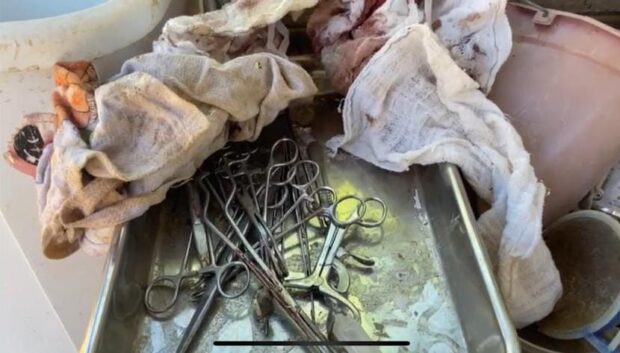 A clínica, inclusive, estava em condições insalubres, contendo fezes, lixos e até entulhos espalhados pelo local. A corporação identificou ainda pinças cirúrgicas contendo vestígios de sangue, seringas e ampolas de medicamentos de uso veterinário com prazo de validade vencido, além de descartes irregulares, conforme o delegado Rony Loureiro.