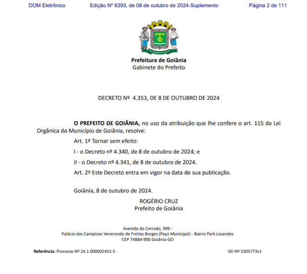 A Prefeitura de Goiânia publicou, na tarde desta terça-feira, 8, a revogação da exoneração dos servidores comissionados. A decisão ocorre após repercussão negativa e suspensão de serviços e atendimentos essenciais, em especial na área da saúde, conforme mostrou o Jornal Opção.