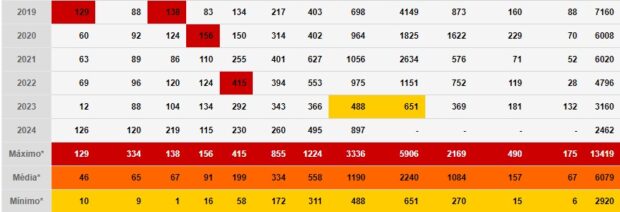 Um ponto destacado por André é o retrocesso com relação às queimadas. No ano passado, segundo o especialista, o estado de Goiás havia alcançado um dos melhores índices de queimadas registradas no mês de agosto dos últimos 38 anos. Em 2023, foram 488 registros de queimadas em agosto, mês naturalmente mais seco e quente (o que aumenta os danos do fogo e da fumaça). Entretanto, até o momento, agosto de 2024 já registrou 897 focos de incêndio, quase o dobro do ano anterior. Em 2022, o mês teve 975 registros de incêndio e em 2021 foram 1056.
