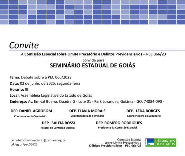 O seminário sobre a PEC 66 deve contar com a presença de parlamentares federais, prefeitos, secretários municipais de Fazenda, técnicos da Receita Federal e especialistas em previdência e orçamento público.