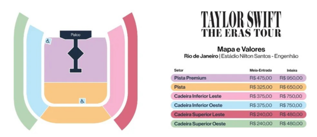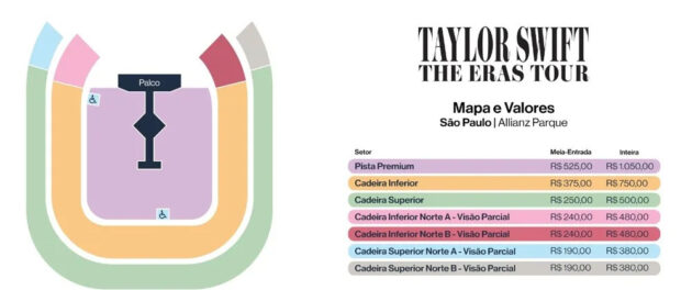 A venda de ingressos para os shows da Taylor Swift | The Eras Tour no Brasil será realizada em três etapas no site oficial da turnê (http://taylorswifttheerastour.com.br/) e nas bilheterias oficiais da Tickets For Fun.
