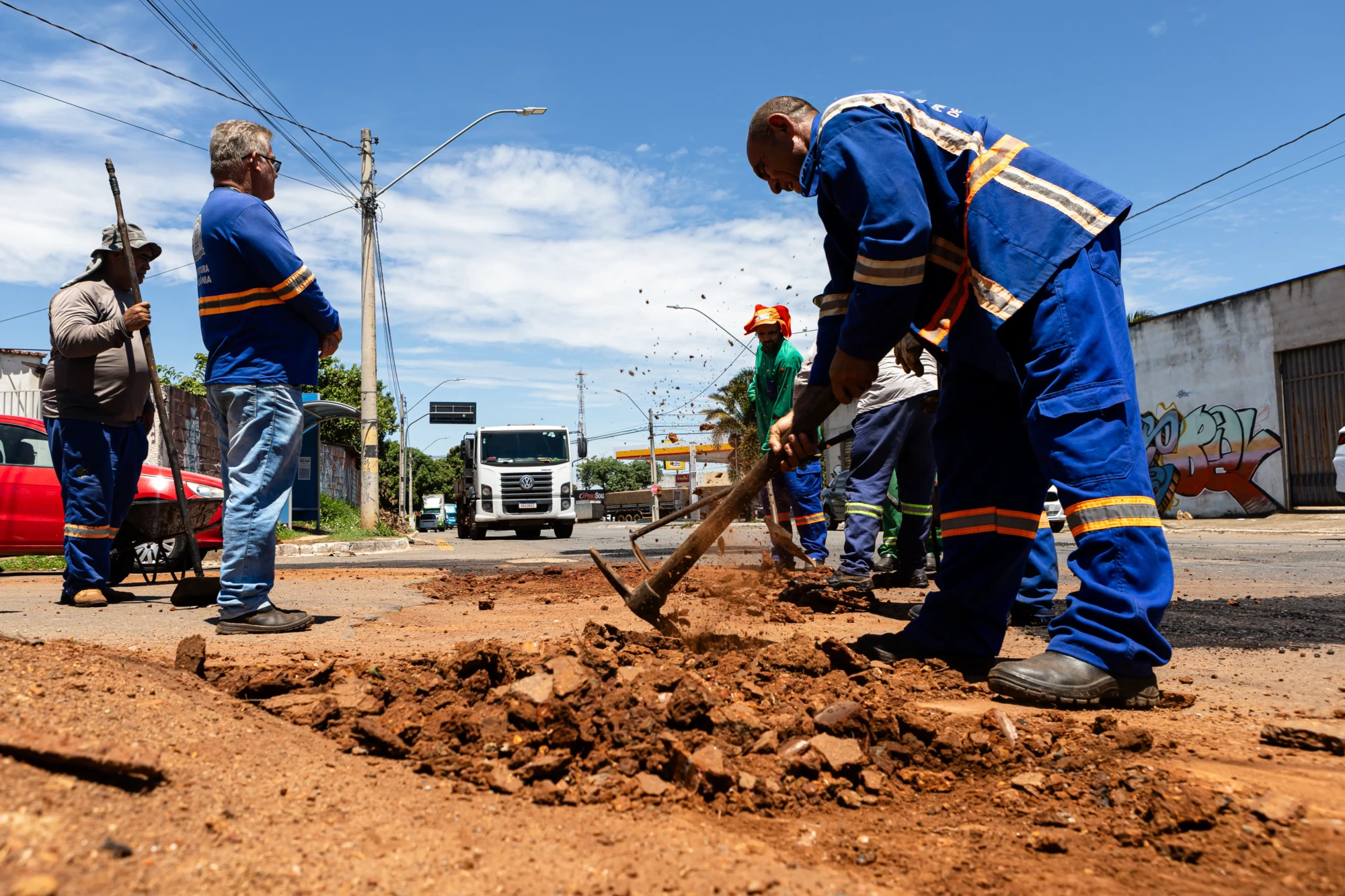 SEINFRA executa reparos no trecho de asfalto aberto pela Saneago no Jardim Guanabara | Foto: Guilherme Alves/ Jornal Opção