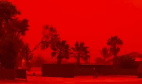 Ciclone Narelle deixa céu vermelho na Austrália Ocidental após tempestade de poeira