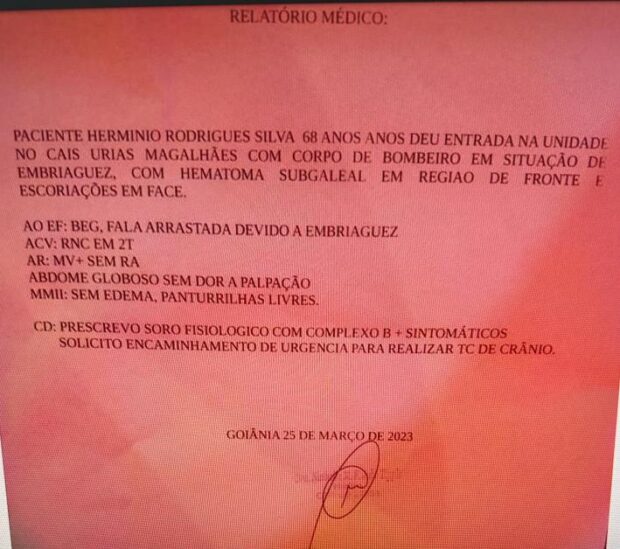 Um motorista usando carro da prefeitura de Goiânia, lotado na Secretaria de Assistência Social, se envolveu em um acidente com um motociclista na noite dessa quinta feira, 25, na avenida Marechal Rondon, em Goiânia. Apontado como o causador da colisão, o condutor Hermínio Rodrigues Silva, de 68 anos, apresentava sinais de forte embriaguez. Mesmo assim, não foi submetido ao teste do bafômetro e também não foi preso.