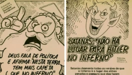 Publicada no irreverente Jornal de Deboche, a entrevista com Deus e Satanás mistura humor político e crítica social