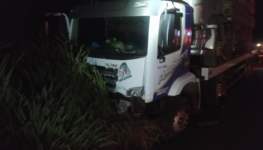 Carro com motorista e quatro passageiras invadiu pista contrária e bateu de frente com caminhão