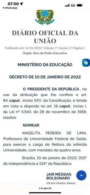 Na UFG não se sabia de nada a respeito da indicação até a madrugada de terça-feira, 11, quando a informação foi vista no Diário Oficial da União. Esperava-se que o Ministério da Educação confirmasse Sandramara Matias Chaves, a eleita pela comunidade acadêmica.