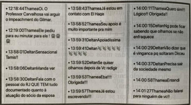 Da simples observação do documento ilustrado na figura 13, são extraídos os seguintes elementos indiciários: alvo selecionado — Gilmar Mendes; acusadores — procuradores da República Deltan Dallagnol e Thaméa Danelon; laranja — advogado Modesto Carvalhosa; acusação — nenhuma, só para manter o sentimento de indignação popular; objetivo do ato ilícito — cercar o inimigo do povo. E o pior, os procuradores da Lava Jato estavam advogando, de forma secreta, mas dolosa e firmemente.