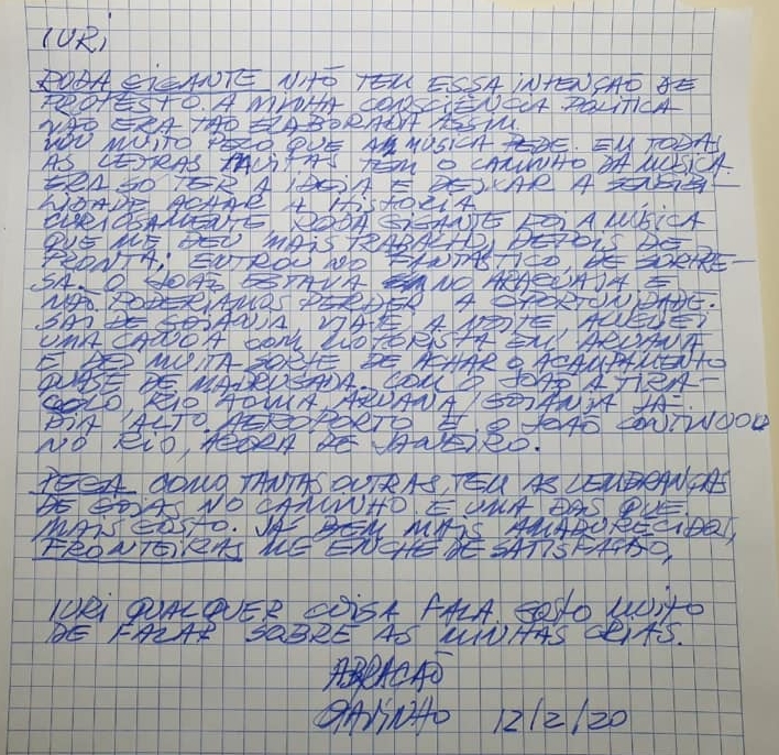 Talvez as melhores palavras pra falar dele sejam as que ele mesmo escreveu, e é com elas que nos despedimos e agradecemos, mais uma vez, tanto amor que temos recebido. — Magali, Anna Paula, Luisa, Thiago, Teteto, Ricardo e Silvia.