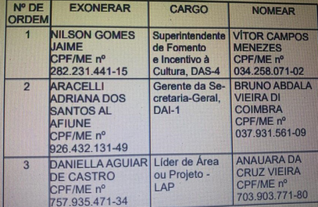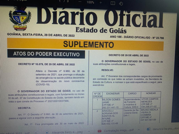 Bruna Abdala Vieira di Coimbra e Anauara da Cruz Vieira também assumem cargos na Secretaria de Cultura do governo de Goiás