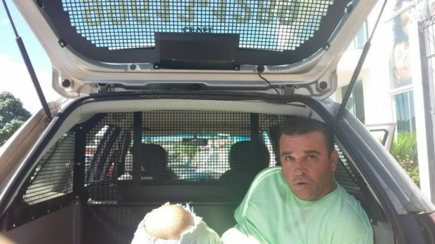 Luciano da Ambulância, preso em flagrante, chegou algemado à Delegacia de Polícia de Goianira.