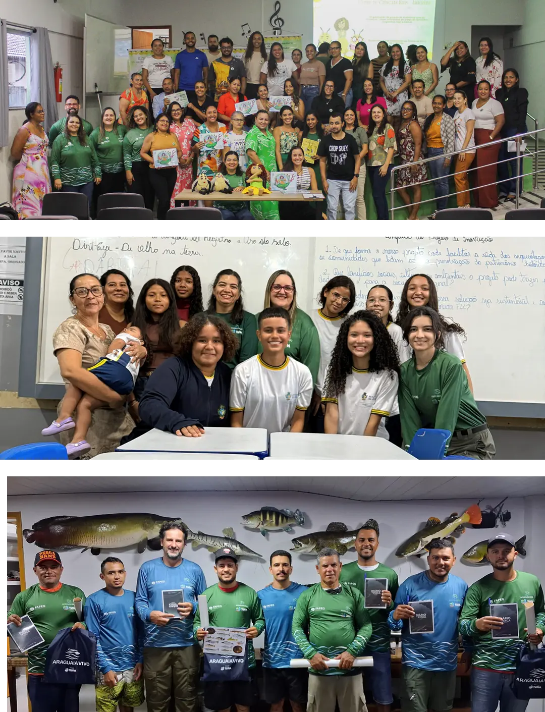 Logo após a aprovação e implementação do programa “Araguaia Vivo 2030”, em 2023, o CNPq lançou um edital do Programa de Pesquisa em Biodiversidade (PPBio). A coordenação do “Araguaia Vivo 2030” então procurou reforçar o componente de biodiversidade do projeto e montou uma proposta envolvendo mais pesquisadores em diferentes grupos de organismos, a serem estudados em toda a bacia do Araguaia. O projeto PPBio Araguaia foi aprovado pelo CNPq e passou a ter então uma forte sinergia com o “Araguaia Vivo 2030” (@ppbio.araguaia). Mais recentemente, outra iniciativa semelhante foi aprovada pelo CNPq no edital 2025 do “Programa Ecológico de Longa Duração” (PELD). O PELD Araguaia, coordenado por professores da UEG, com participação de pesquisadores de diferentes instituições goianas, e fomentado pela FAPEG, se propõe a um monitoramento da biodiversidade a longo prazo na região do Parque Estadual do Araguaia e Área de Proteção Ambiental dos Meandros do Rio Araguaia, próximo ao povoado de Luiz Alves. Há também outras parcerias importantes em biodiversidade aquática desenvolvidas com outro projeto do programa INCT do CNPq, o INCT da Biodiversidade e Uso Sustentável de Peixes Neotropicais (INCT-Peixes), que vem possibilitando o estudo da espécie de peixe invasora no Araguaia (o Tambaqui), que representa uma ameaça à fauna local.