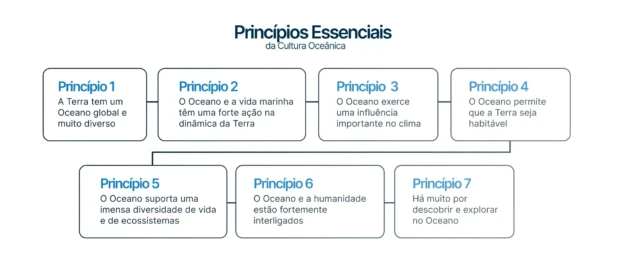 A cultura oceânica (Ocean Literacy) é a compreensão de que o oceano e as águas continentais fazem parte de um mesmo sistema interdependente, essenciais para a vida no planeta e diretamente influenciados pelas ações humanas. Trata-se de um conceito que integra conhecimentos científicos, saberes tradicionais e práticas sociais para reconhecer o papel do oceano na regulação do clima, na produção do oxigênio, na manutenção da biodiversidade e da vida na Terra. Sob a perspectiva econômica, o oceano não é apenas um recurso natural, mas um ativo estratégico que sustenta modos de vida, cadeias produtivas e expressões culturais. Nesse sentido, a cultura oceânica fundamenta a construção de modelos econômicos resilientes, voltados ao desenvolvimento sustentável, segurança alimentar e à estrutura social de populações dependentes dos recursos hídricos. Desta forma, a cultura oceânica enfatiza que tudo o que acontece em terra, desde o uso do solo até a gestão da água, impacta os ambientes marinhos, preconizando o desenvolvimento de consciência crítica, responsabilidade coletiva e capacidade de ação para a conservação e o uso sustentável de todos os recursos hídricos.