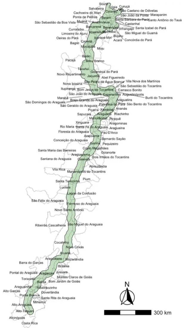 O corredor foi delimitado como uma faixa contínua de 40 quilômetros de largura, 20 km na margem direita e 20 km na margem esquerda do rio Araguaia, e segue para além da confluência com o rio Tocantins, estendendo-se por quase três mil quilômetros até o litoral amazônico. Ele tem origem no Cerrado goiano, no Parque Nacional das Emas, atravessa Mato Grosso e Tocantins, incorpora as dinâmicas amazônicas no Pará e no Maranhão e encontra o oceano Atlântico na Ilha do Marajó. Ao longo desse percurso, o corredor conecta dois dos biomas mais importantes e ameaçados do país, Cerrado e Amazônia, estruturando um dos principais eixos ecológicos, hidrológicos e socioambientais do Brasil.