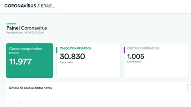Foi então que, no sábado, 6, sem qualquer aviso, a página do Ministério da Saúde responsável por divulgar todos os dados referentes à Covid-19 passou a contra apenas com os novos recuperados da doença nas últimas 24 horas – com destaque em verde, os novos casos confirmados no último dia e as mortes constatadas pela doença em 24 horas. Foram retiradas todas as outras informações, inclusive o total de casos, mortes, pacientes com suspeita da doença, detalhes dos pacientes. Nada além dos três dados totais diários, por região e Estado.