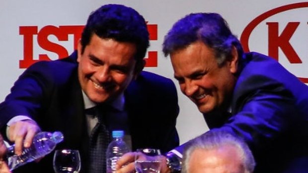 Juízes não começaram a brotar “ontem” em eventos assim. No fim de 2016, o herói nacional daquele momento, Sergio Moro, posou ao lado de vários possíveis investigados pela Lava Jato em uma festa de personalidades do ano promovida por um veículo de comunicação. Uma foto daquela noite ficou clássica: Moro sorri entre cochichos com o então senador e presidente do PSDB Aécio Neves. Também lá estavam o então presidente Michel Temer (MDB) e outros tucanos. Depois desse flagrante, nem se quisesse (e, pelo que se viu depois, não faria muita diferença), Moro descolaria a imagem de “amigo” daquele grupo e de “perseguidor” de petistas.