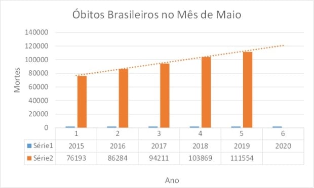 Vamos tomar um mês do presente ano, 2020, quando a pandemia já estava instalada no Brasil, como base de nosso raciocínio. O mês de maio, por exemplo. O Brasil não é um país rico em estatísticas, mas o chamado Portal da Transparência nos fornece números relativamente confiáveis dos óbitos nacionais, pois são colhidos nos cartórios de Registro Civil.