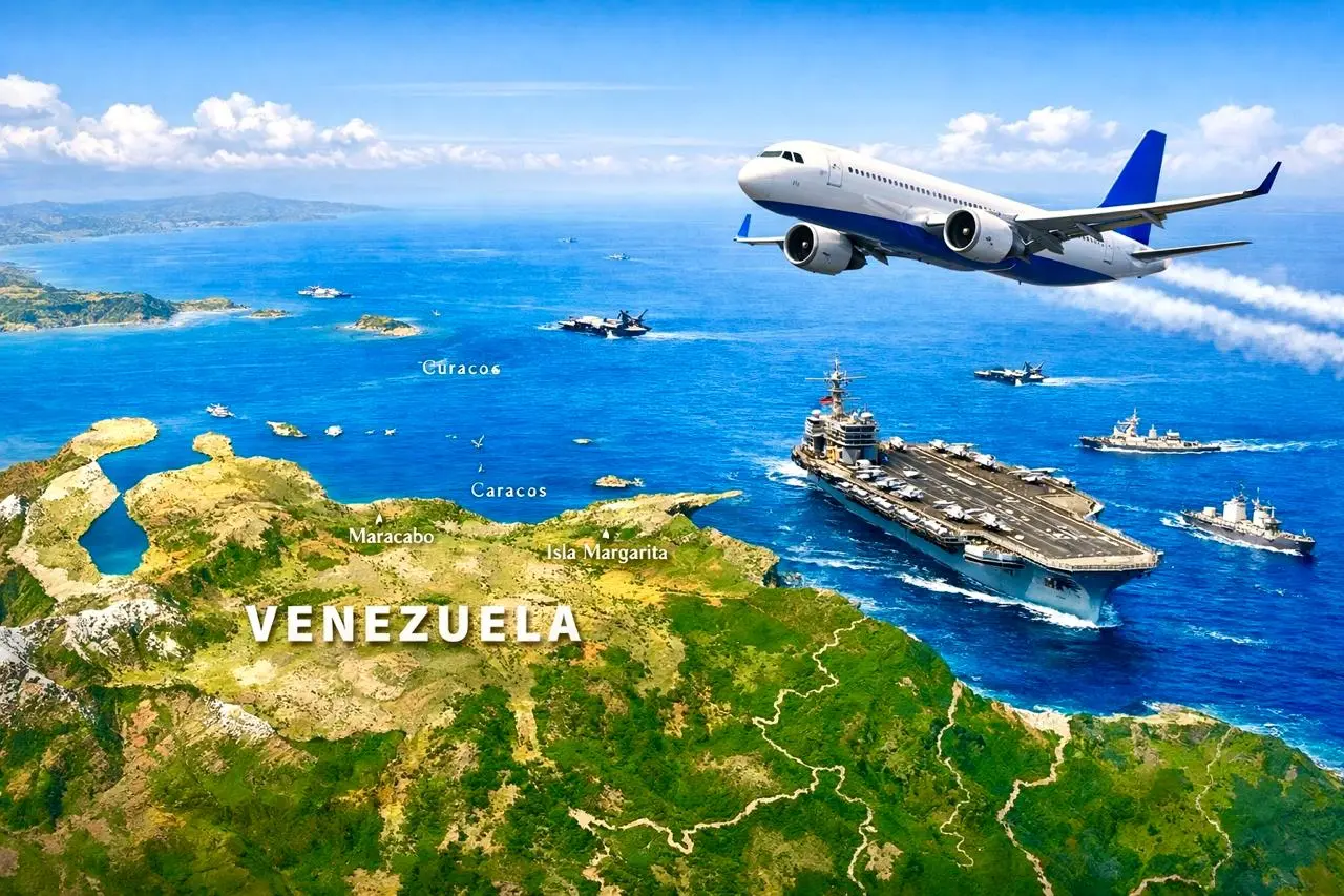 A Venezuela continua sendo um país de paisagens extraordinárias. Mas hoje o que mais se projeta sobre seu território não é apenas o azul do céu, é a sombra permanente da geopolítica. Aviões civis cruzam com cuidado. A guerra, ou sua ameaça, permanece estacionada logo ali, no mar.