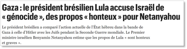 Conforme o jornal francês, as últimas declaração de Lula sobre a guerra em Gaza “estão entre os comentários mais virulentos alguma vez feitos sobre o conflito”. Descreveu o petista como “uma voz proeminente do [Hemisfério] Sul, cujo país detém a presidência rotativa do G20”.