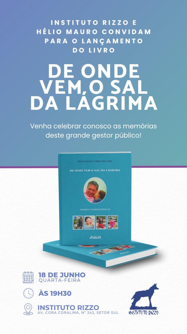 O ex-prefeito de Goiânia, Hélio Mauro Humbelino Lobo, lançará seu livro de memórias, intitulado “De Onde Vem, o Sal da Lágrima”, no próximo dia 18 de junho, às 19h30, no Instituto Rizzo, localizado no Setor Sul, na capital goiana.
