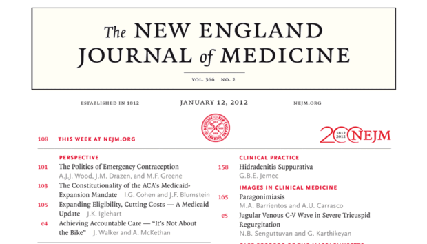 Criado em 1812 (há 213 anos!), nos Estados Unidos, o “New England Journal of Medicine”, é uma publicação da Massachusetts Medical Society.