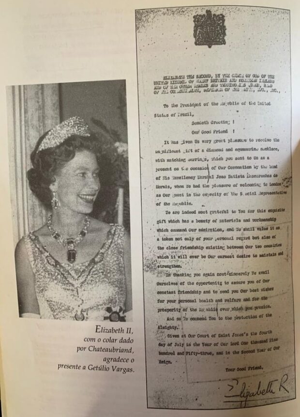 Brasileiro foi à coroação de Elizabeth II em 1953 e lhe presenteou com joias de luxo