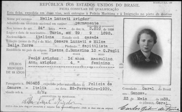 Familiares de Primo Levi — o casal Giovanni Turín e Elda Calderoni, prima de Ester, mãe do escritor — foram para Buenos Aires. “Em janeiro de 1939 uma das quatro irmãs Luzzati, Nella, viajou de Turim para São Paulo acompanhada de seus dois filhos. O marido de Nella viajou ao Brasil, separadamente, com um falso contrato de trabalho; de outra forma não poderia ter conseguido o visto. A família só regressaria para a Itália depois da guerra.”