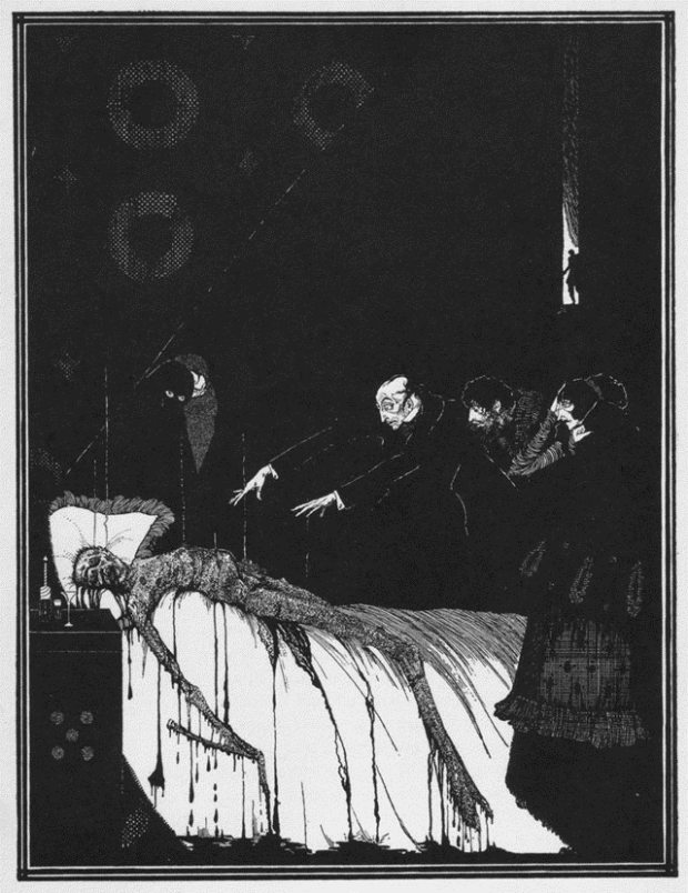 Entretanto, como Poe, P e eu somos bocudos, vou, sim, contar o que aconteceu. Aliás, não sou eu, portanto me perdoe o spoiler. A fala é de P, o narrador-mesmerizador: “Seu corpo [de Valdemar] desintegrou-se — se desintegrou por completo sob minhas mãos. Em cima da cama, diante de toda a equipe, nada mais havia que uma massa quase líquida de uma asquerosa — detestável — podridão”. De arrepiar, não é, leitor mui amigo?