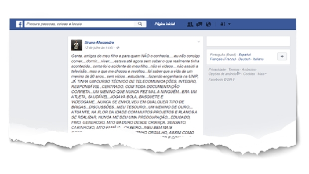 A mãe desaguou sua tristeza no próprio perfil do filho no Facebook, em um longo desabafo em que, entre caixas altas e baixas, maiúsculas e minúsculas, se podia sentir a força de seu pranto. Queria ela saber quem era aquele “indivíduo” que tinha abandonado a cena em que morria seu filho.