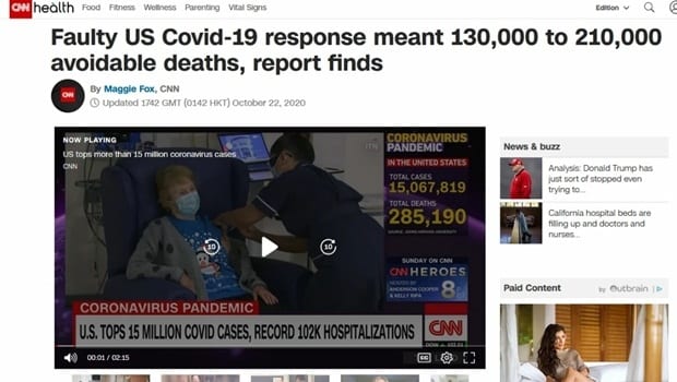 A matéria do Aos Fatos explica que a confusão começou porque na matéria “Faulty US Covid-19 response meant 130,000 to 210,000 avoidable deaths, report finds (Resposta falha da Covid-19 nos Estados Unidos resultou entre 130.000 a 210.000 mortes evitáveis, revela relatório)”, a pessoa vê junto com o texto uma galeria de vídeos de reportagens da CNN. E um dos vídeos sugeridos é justamente o que mostra o momento em que Margaret Keenan se torna a primeira pessoa do mundo a receber uma dose da vacina já aprovada no Reino Unido.