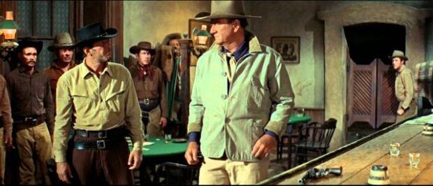 O repórter havido sido bem tratado, mas duvidou do vigor de Ringo Kid. “Ele vem até aqui sem ser convidado, mas ainda assim o convido a ficar. Então sentamos para tomar um mescal servido numa jarra de água”, vocifera John Wayne. “Ele [o jornalista] precisou de ajuda para chegar até o quarto.”
