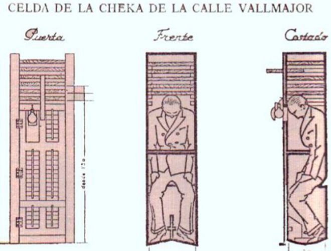 “As ‘neveras’ eram celas quadradas e estreitas, revestidas com cimento poroso que filtrava a água de um depósito situado na parte superior. Isso convertia o cubículo em um autêntico frigorífico, no qual os presos passavam horas no escuro. A isso acrescentou, como bom músico que era, um mecanismo chamado ‘metrónomo’, que consistia num aparato de cordas semelhante a um pêndulo que emitia um penetrante e contínuo assovio que deixava as vítimas desesperadas”, relata o “Abc”.
