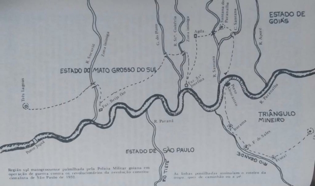 As tropas goianas partiram em 19 de julho de 1932 e só retornaram em 8 de outubro, participando de combates no Porto de Alencastro (6 de agosto), na região do rio Quitéria (11 de agosto) e em Três Lagoas (5 de outubro).