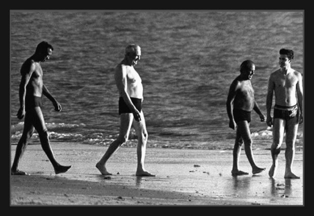 O presidente era um homem sisudo, decente e, ao lado de Golbery, decidiu que era preciso acabar com a ditadura (ele é o “pai” da abertura e Golbery e Figueiredo são “tios”). Porque, disse ele, havia se tornado “uma bagunça”. Dá para imaginar o Alemão de calção numa praia — ele que era avesso à exposição pública de sua intimidade? Pois, repórter nato, Orlando Brito flagrou Geisel numa praia, com seguranças, e clicou imediatamente. O presidente aparece, de calção de banho, com o corpo aparentemente firme (a pança não é grande), mas ligeiramente, digamos, “empenado”.