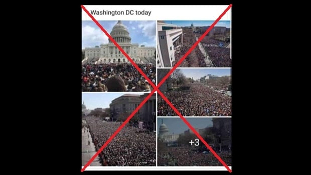 Registros da Marcha Pelas Nossas Vidas, de 2018, foram publicados no Facebook para dar dimensão muito maior do que o número real de apoiadores de Trump que marcharam até o Congresso