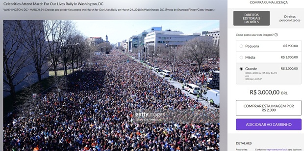 As manifestações por mais controle na venda de armas de foto em 2018 estão registradas na CNN, The Washington Post, CBS e The Atlantic. Veículos de comunicação podem, inclusive, comprar imagens do banco de dados, por exemplo, do Getty Images. E são as mesmas fotos usadas na semana passada como se fossem de quarta-feira.