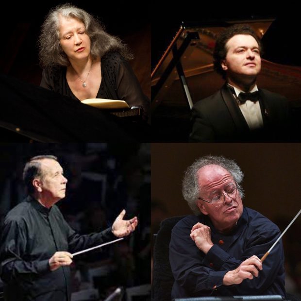 A argentina Martha Argerich (1941), o russo Evgeny Kissin (1971, o americano, James Levine (1941 – 2021), e, o russo Mikhail Pletney (1957). Esse concerto foi gravado no Festival Internacional de Música de Verbier na Suíça em 22 de Julho de 2002.