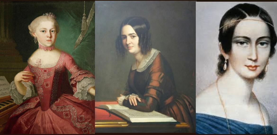 Os compositores Amadeus Mozart (176-1791), Felix Mendelssohn (1809-1847) e Robert Schumann (1810 – 186) tiveram mulheres extremamente talentosas ao lado deles, e, por serem mulheres, foram desencorajadas a serem compositoras profissionais.