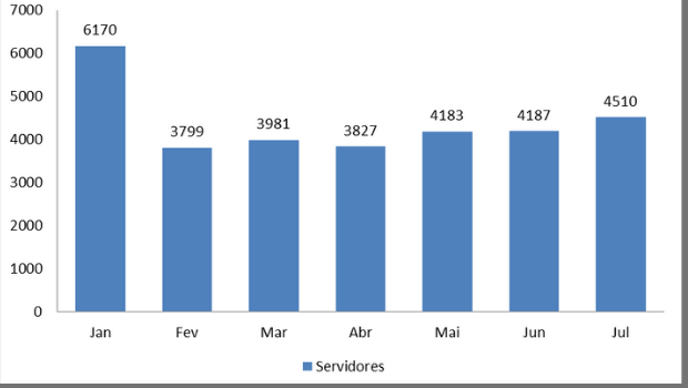 Mas, mês a mês, a situação está mudando. Conforme o quadro abaixo demonstra, a recontratação de comissionados tem sido gradual e ininterrupta. Desde fevereiro, foram nomeados 711 novos servidores em concurso. Os maiores saltos ocorreram entre abril e maio (356) e entre junho e julho (323). O aumento desde fevereiro foi de 18%.