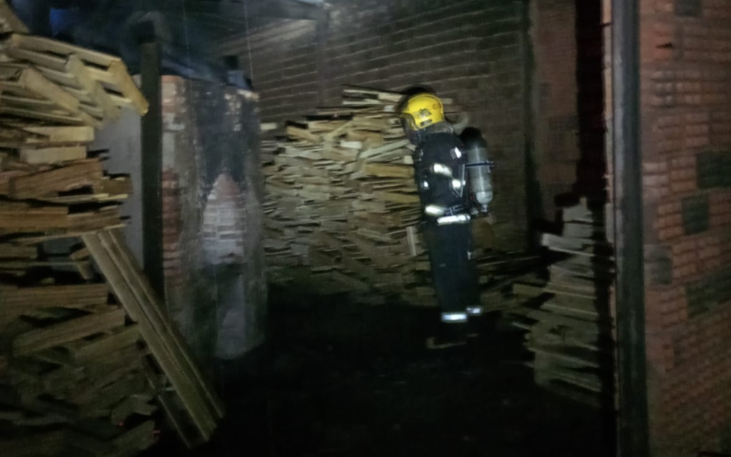 Corpo de Bombeiros combate incêndio em fábrica de tijolos