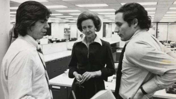 Quando o marido se suicidou, Kay Graham assumiu o “Washington Post”, com o apoio de Ben Bradlee, fez um grande jornal