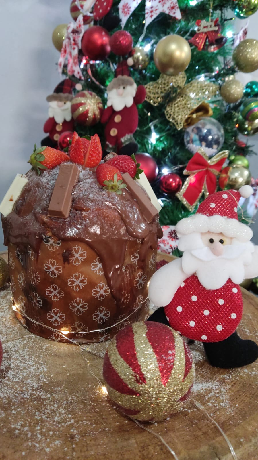 Depois coloque a ganache por cima dos panetones e decore, use sua criatividade