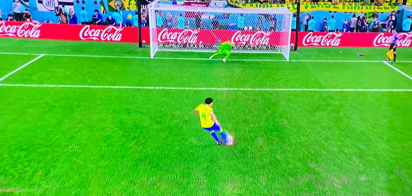 Um passe para o meio da área brasileira, o joelho do Marquinhos. Gol comum da Croácia.