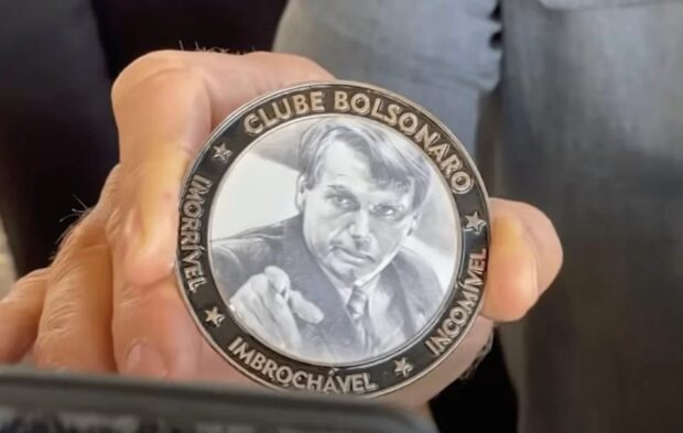 A medalha apresenta três termos previamente utilizados pelo ex-presidente para se autodefinir durante seu mandato: “imbrochável, imorrível e incomível”.