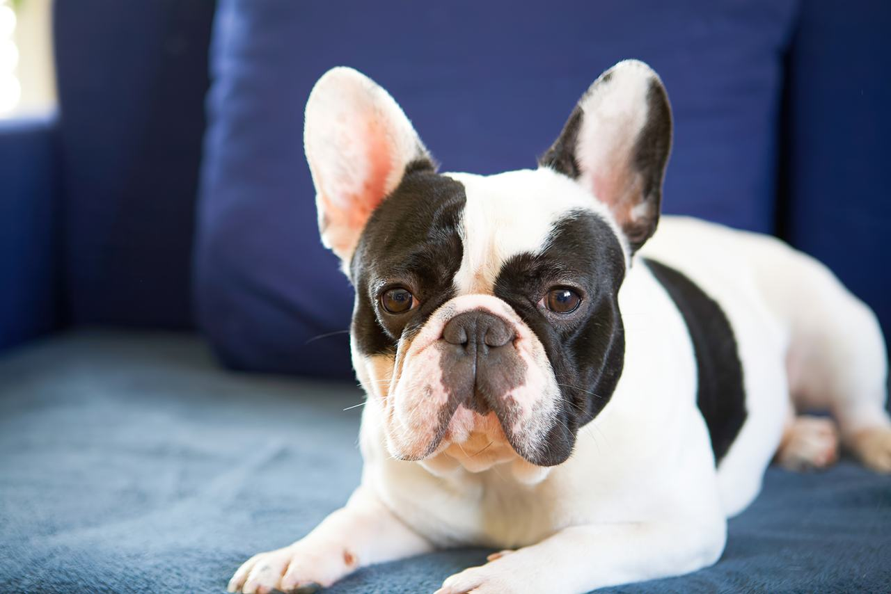 Compacto, robusto e dotado de grandes orelhas, o buldogue francês mantém uma aparência frágil e desprotegida que encanta muitos tutores. Muito fofos e carinhosos, os cães da raça são leais e adoram a companhia de crianças.